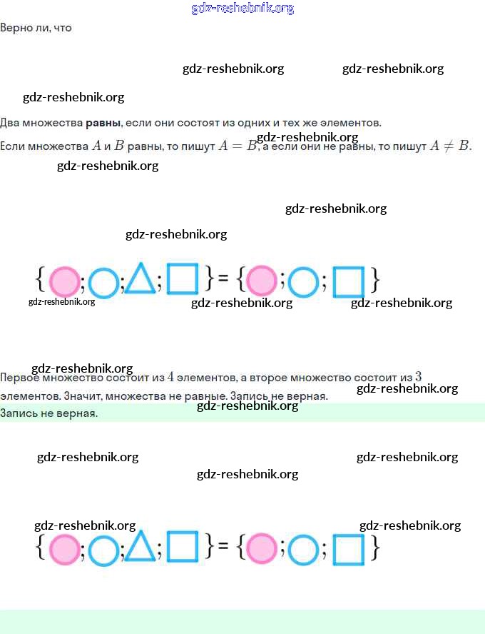 Урок 3. Равные множества. Пустое множество