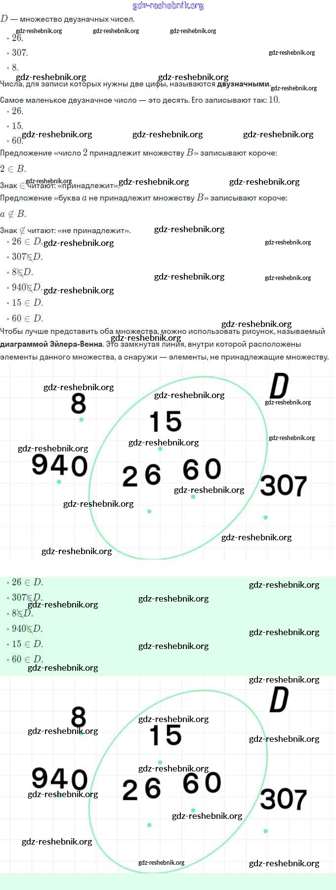 ГДЗ решебники Учебник по Математике 3 класс Петерсон Учусь учиться Часть 1, 2, 3 - Урок 5. Диаграмма Эйлера-Венна. Знаки ∈ и ∉ 5