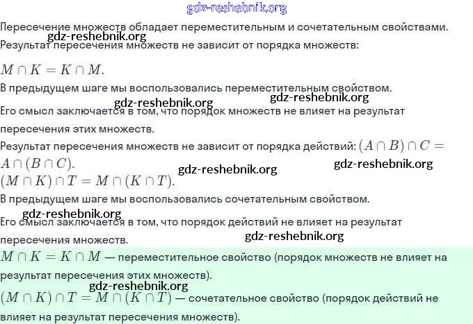 Урок 11. Свойства пересечения множеств