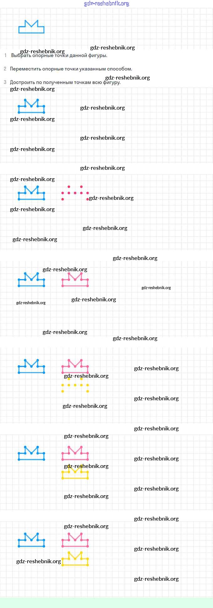 gdz-reshebnik.org - сайт готовых домашних заданий и решебников для школьников по Математике для третьего класса. Предоставляем готовые ответы на задания, авторские материалы к Учебнику Петерсон Учусь учиться Часть 1, 2, 3 - Урок 15. Перемещение фигур на плоскости 2 . Основная часть контента представлена в бесплатном онлайн-формате с удобным и простым интерфейсом.