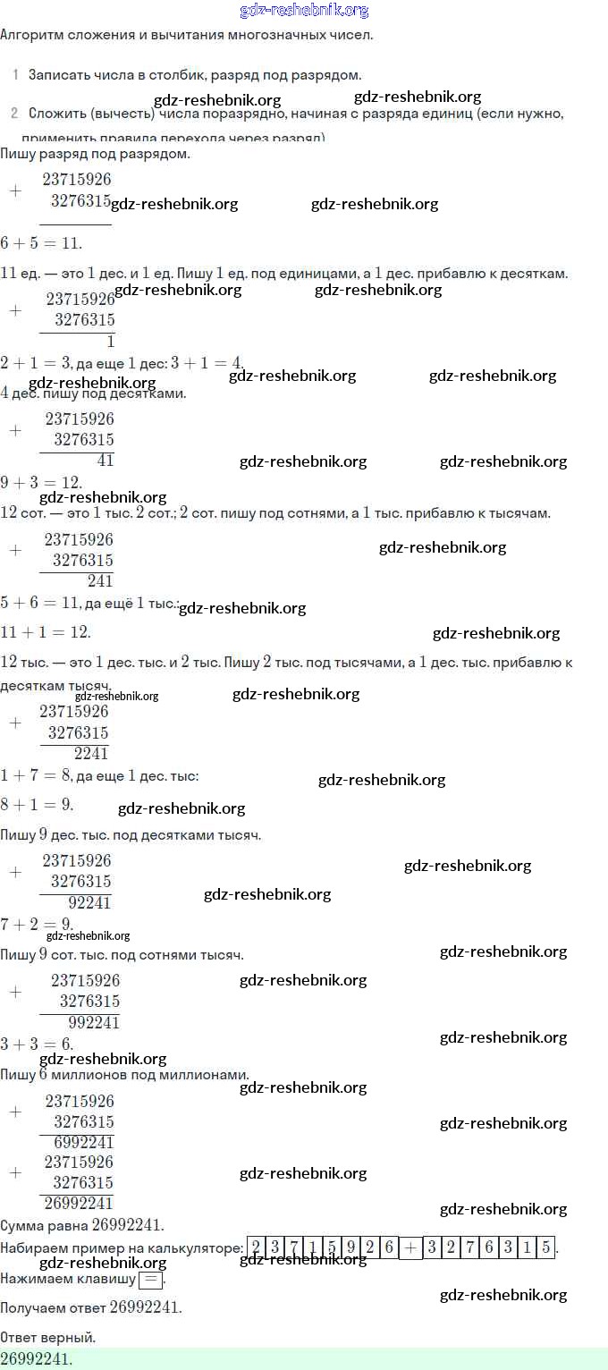 Урок 26. Сложение и вычитание многозначных чисел
