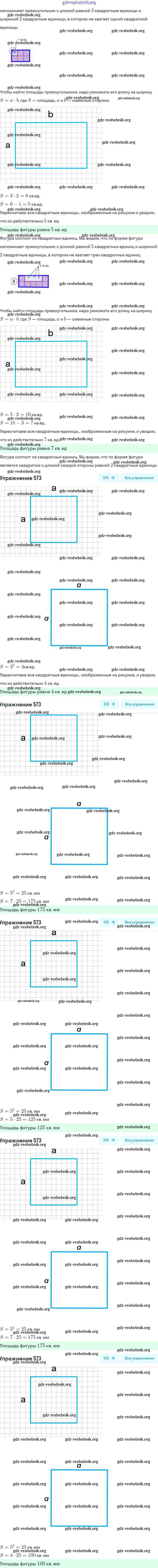 ГДЗ решебники Учебник по Математике 5 класс Дорофеев, Шарыгин - 7.4. Площадь прямоугольника 573
