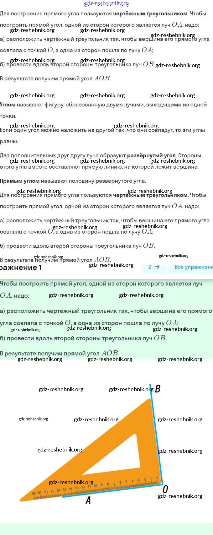 §8.41. Угол. Прямой и развёрнутый угол. Чертёжный треугольник