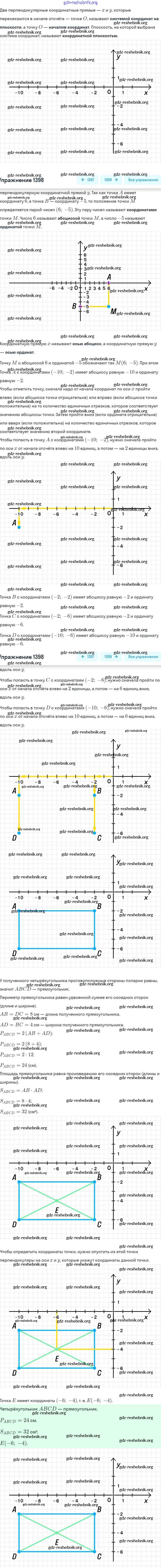 ГДЗ решебники Учебник по Математике 6 класс Виленкин, Жохов - §9. Координаты на плоскости 1398