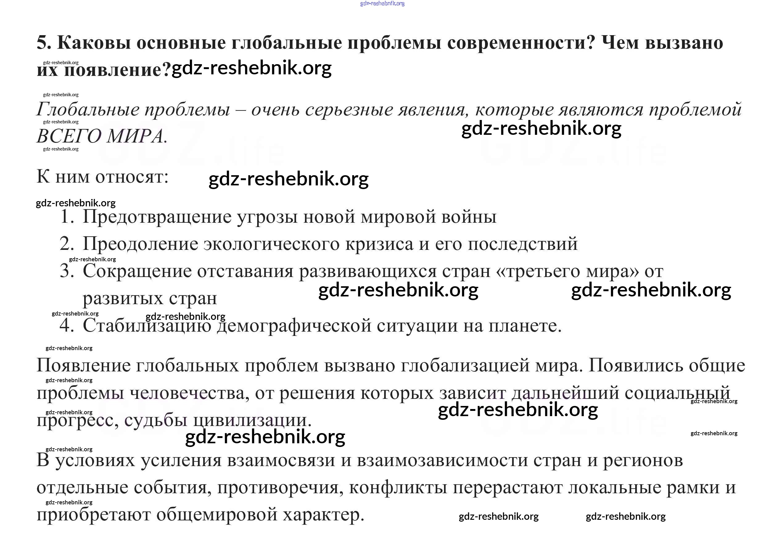 ГДЗ решебники Учебник по Обществознанию 10 класс Боголюбов, Аверьянов Базовый уровень - Вопросы для самопроверки 5
