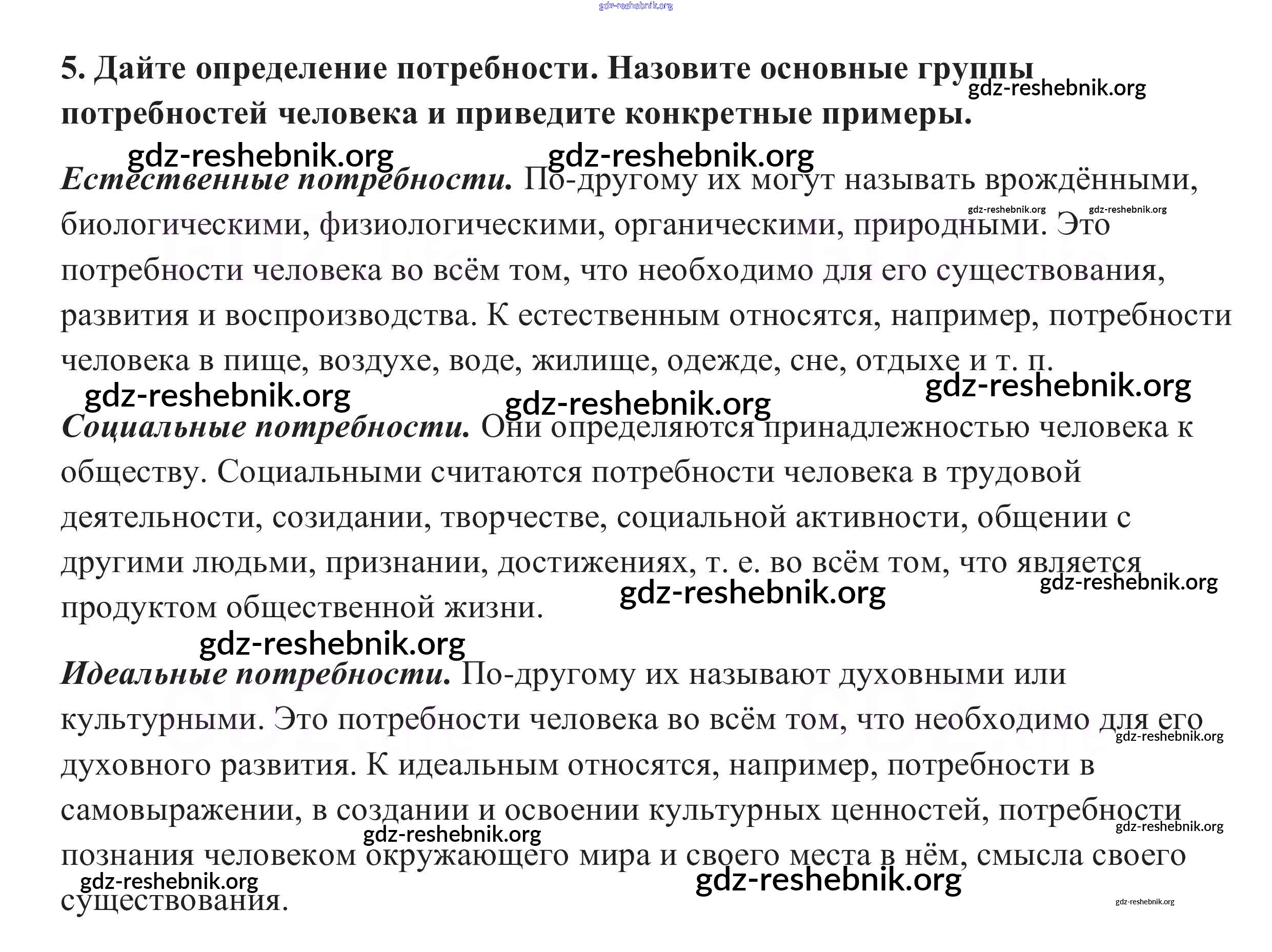 ГДЗ решебники Учебник по Обществознанию 10 класс Боголюбов, Аверьянов Базовый уровень - Вопросы для самопроверки 5