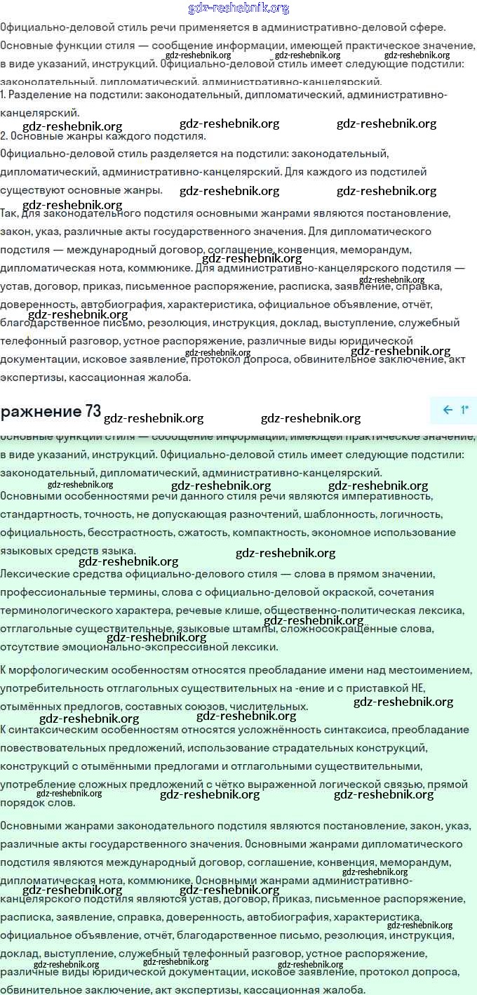 ГДЗ решебники Учебник по Русскому языку 11 класс Львова, Львов Базовый и углубленный уровень - Упражнения 73