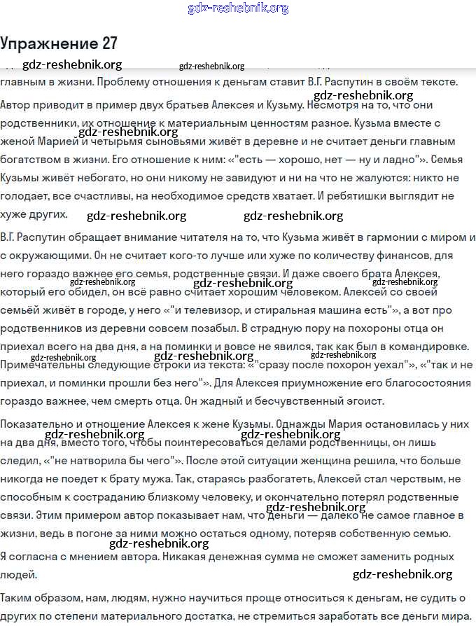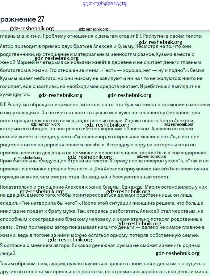 ГДЗ решебники Тетрадь-тренажёр по Русскому языку 11 класс Маслов, Бондарцова Трудные задания ЕГЭ - Тренировочный вариант ЕГЭ. Входная диагностика 27