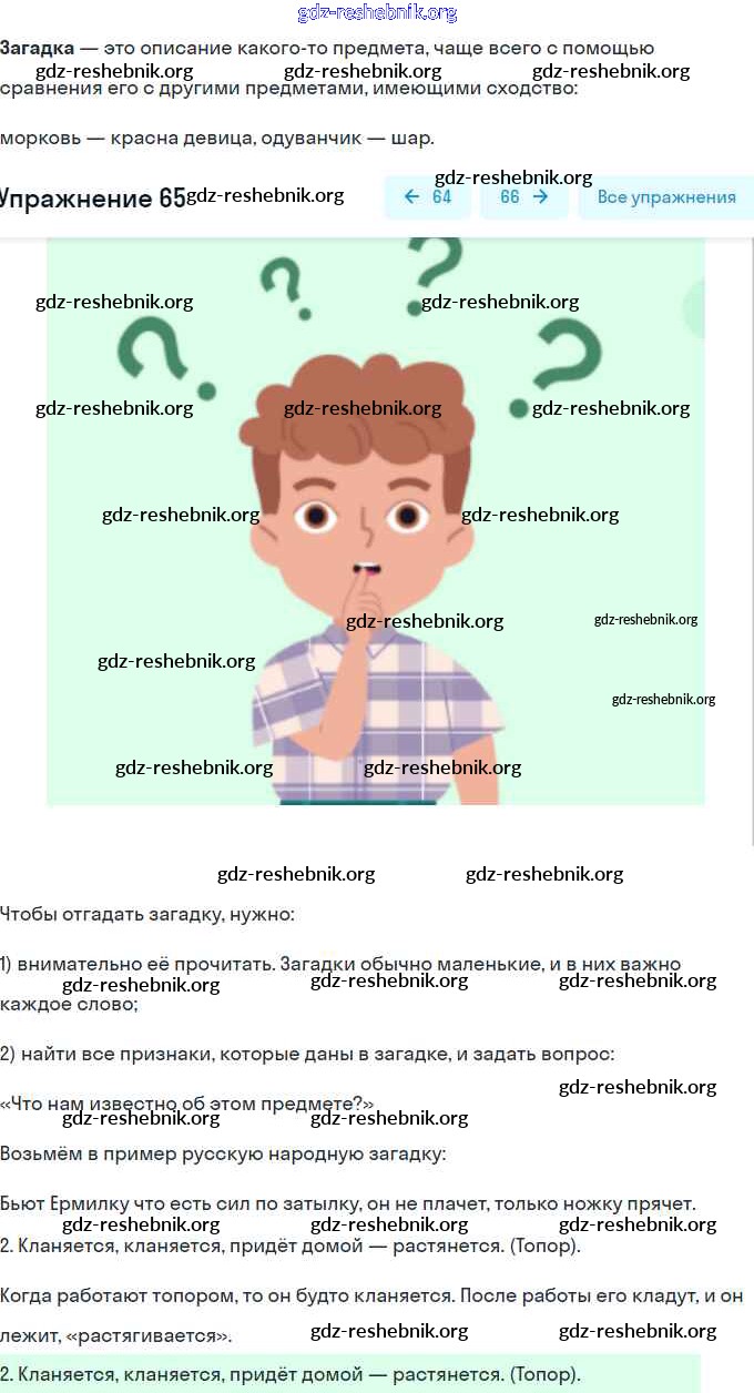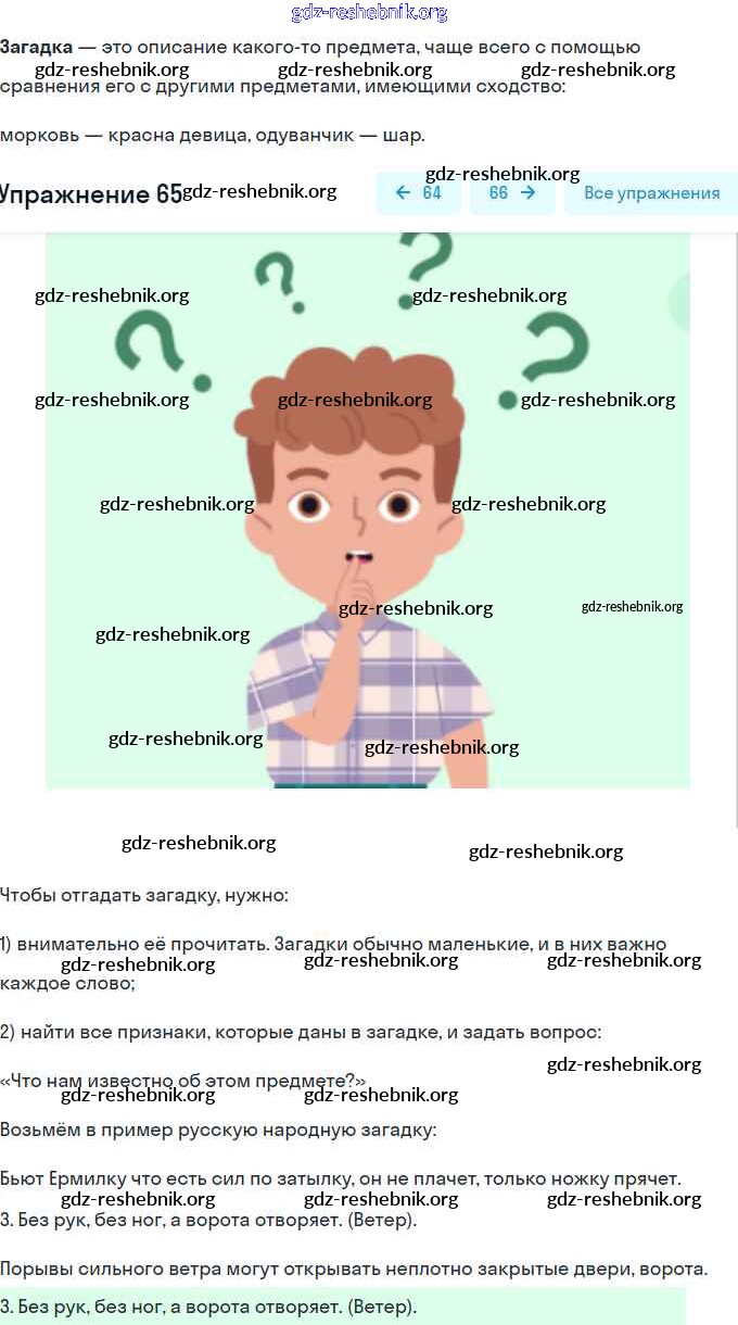 gdz-reshebnik.org - сайт готовых домашних заданий и решебников для школьников по Русскому языку для первого класса. Предоставляем готовые ответы на задания, авторские материалы к Учебнику Бунеев, Бунеева Школа 2100 - Упражнения 65 . Основная часть контента представлена в бесплатном онлайн-формате с удобным и простым интерфейсом.