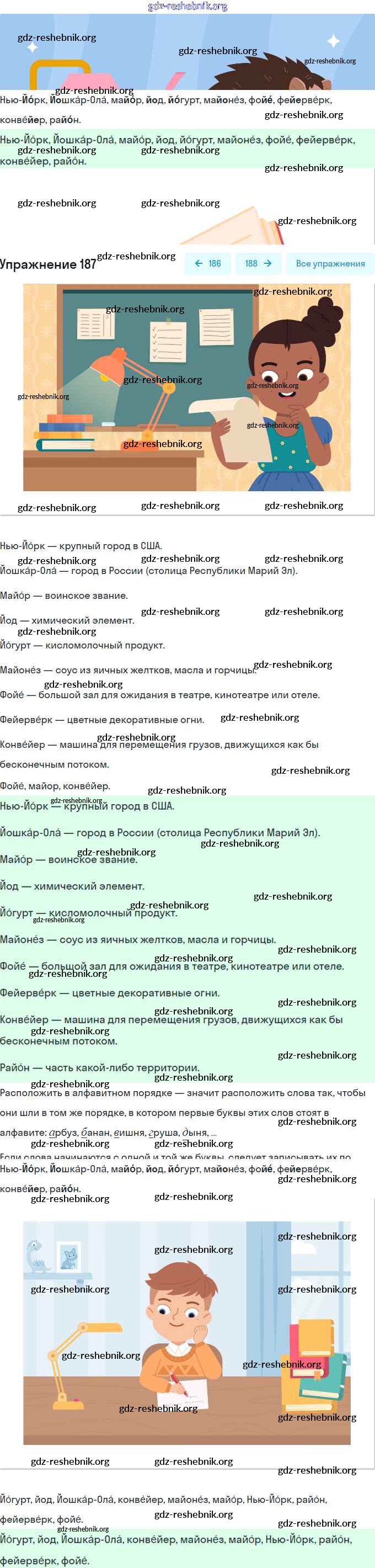 gdz-reshebnik.org - сайт готовых домашних заданий и решебников для школьников по Русскому языку для второго класса. Предоставляем готовые ответы на задания, авторские материалы к Учебнику Канакина, Горецкий Школа России Часть 1, 2 - Часть №1 (Упражнения) 187 . Основная часть контента представлена в бесплатном онлайн-формате с удобным и простым интерфейсом.