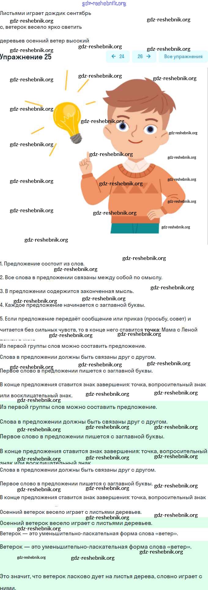 gdz-reshebnik.org - сайт готовых домашних заданий и решебников для школьников по Русскому языку для второго класса. Предоставляем готовые ответы на задания, авторские материалы к Учебнику Канакина, Горецкий Школа России Часть 1, 2 - Часть №1 (Упражнения) 25 . Основная часть контента представлена в бесплатном онлайн-формате с удобным и простым интерфейсом.