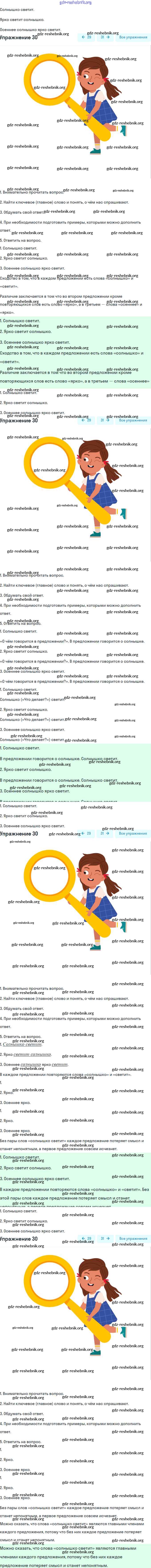 gdz-reshebnik.org - сайт готовых домашних заданий и решебников для школьников по Русскому языку для второго класса. Предоставляем готовые ответы на задания, авторские материалы к Учебнику Канакина, Горецкий Школа России Часть 1, 2 - Часть №1 (Упражнения) 30 . Основная часть контента представлена в бесплатном онлайн-формате с удобным и простым интерфейсом.