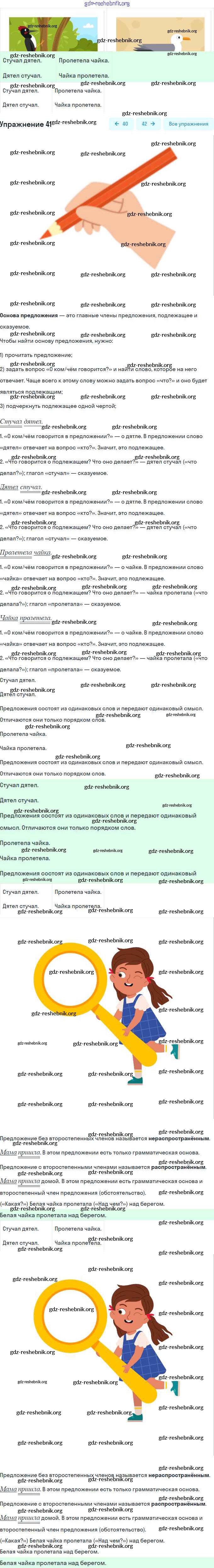 gdz-reshebnik.org - сайт готовых домашних заданий и решебников для школьников по Русскому языку для второго класса. Предоставляем готовые ответы на задания, авторские материалы к Учебнику Канакина, Горецкий Школа России Часть 1, 2 - Часть №1 (Упражнения) 41 . Основная часть контента представлена в бесплатном онлайн-формате с удобным и простым интерфейсом.