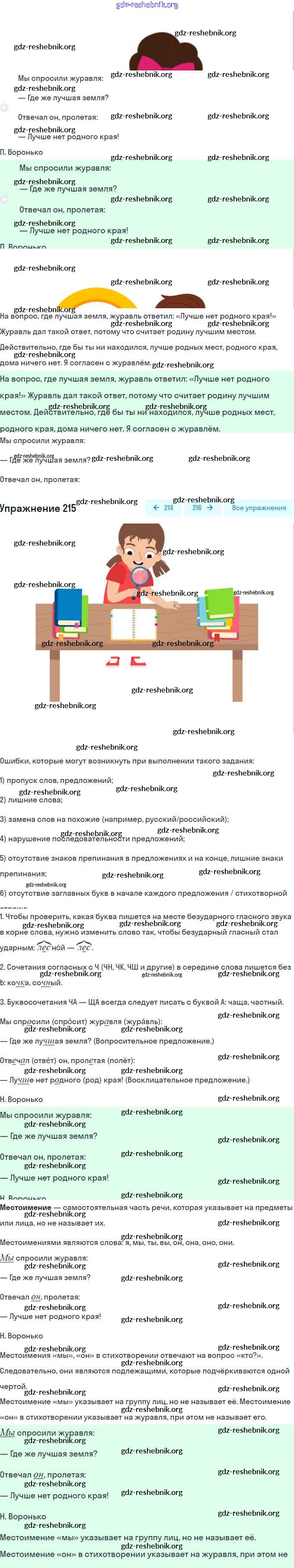gdz-reshebnik.org - сайт готовых домашних заданий и решебников для школьников по Русскому языку для второго класса. Предоставляем готовые ответы на задания, авторские материалы к Учебнику Канакина, Горецкий Школа России Часть 1, 2 - Часть №2 (Упражнения) 215 . Основная часть контента представлена в бесплатном онлайн-формате с удобным и простым интерфейсом.