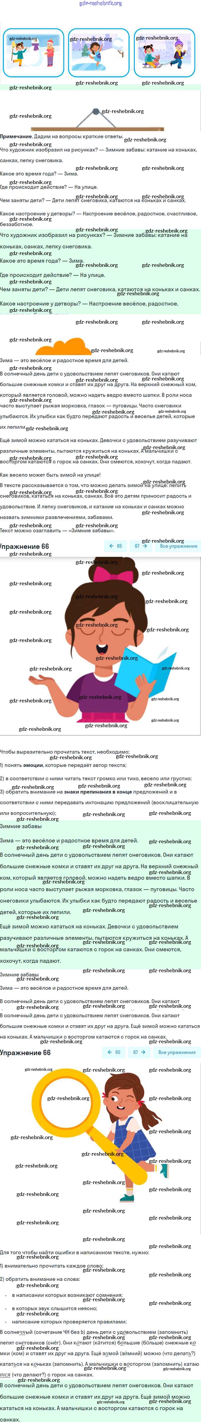 gdz-reshebnik.org - сайт готовых домашних заданий и решебников для школьников по Русскому языку для второго класса. Предоставляем готовые ответы на задания, авторские материалы к Учебнику Канакина, Горецкий Школа России Часть 1, 2 - Часть №2 (Упражнения) 66 . Основная часть контента представлена в бесплатном онлайн-формате с удобным и простым интерфейсом.