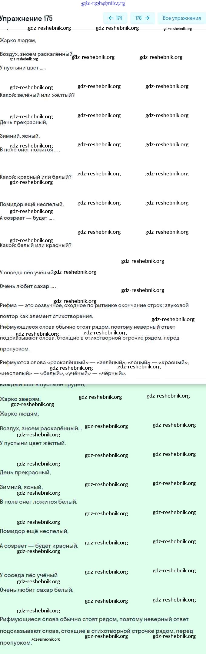 gdz-reshebnik.org - сайт готовых домашних заданий и решебников для школьников по Русскому языку для второго класса. Предоставляем готовые ответы на задания, авторские материалы к Учебнику Климанова, Бабушкина Перспектива Часть 1, 2 - Упражнения 175 . Основная часть контента представлена в бесплатном онлайн-формате с удобным и простым интерфейсом.