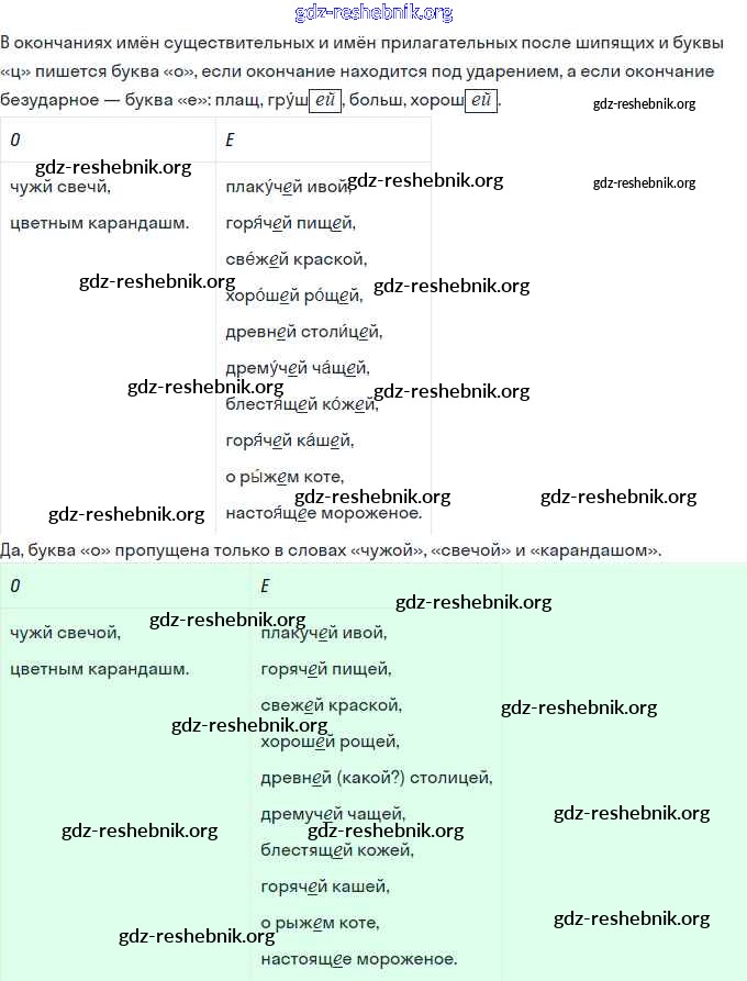 Урок 100. Гласные о и е в окончаниях имён существительных после шипящих и ц