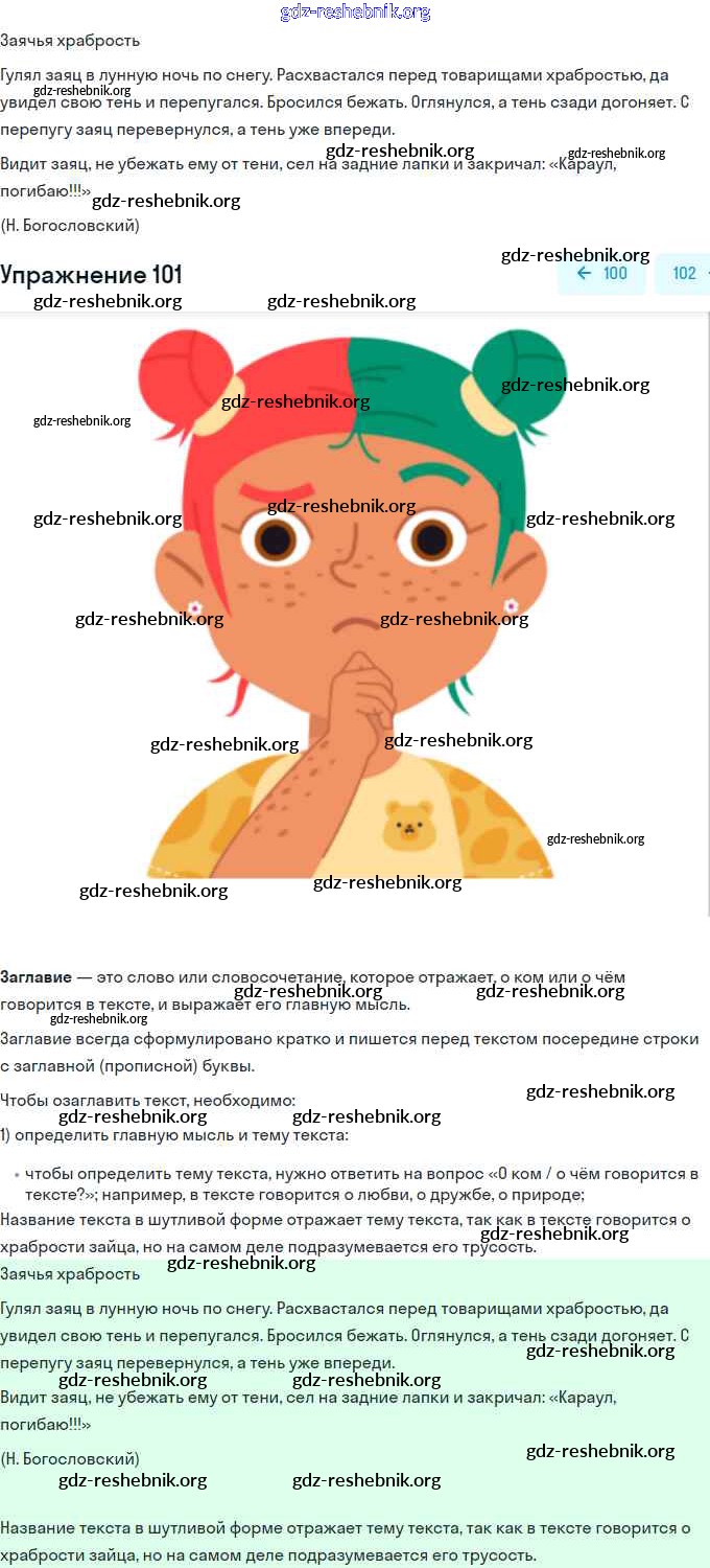 gdz-reshebnik.org - сайт готовых домашних заданий и решебников для школьников по Русскому языку для третьего класса. Предоставляем готовые ответы на задания, авторские материалы к Учебнику Канакина, Горецкий Школа России Часть 1, 2 - Упражнения 101 . Основная часть контента представлена в бесплатном онлайн-формате с удобным и простым интерфейсом.