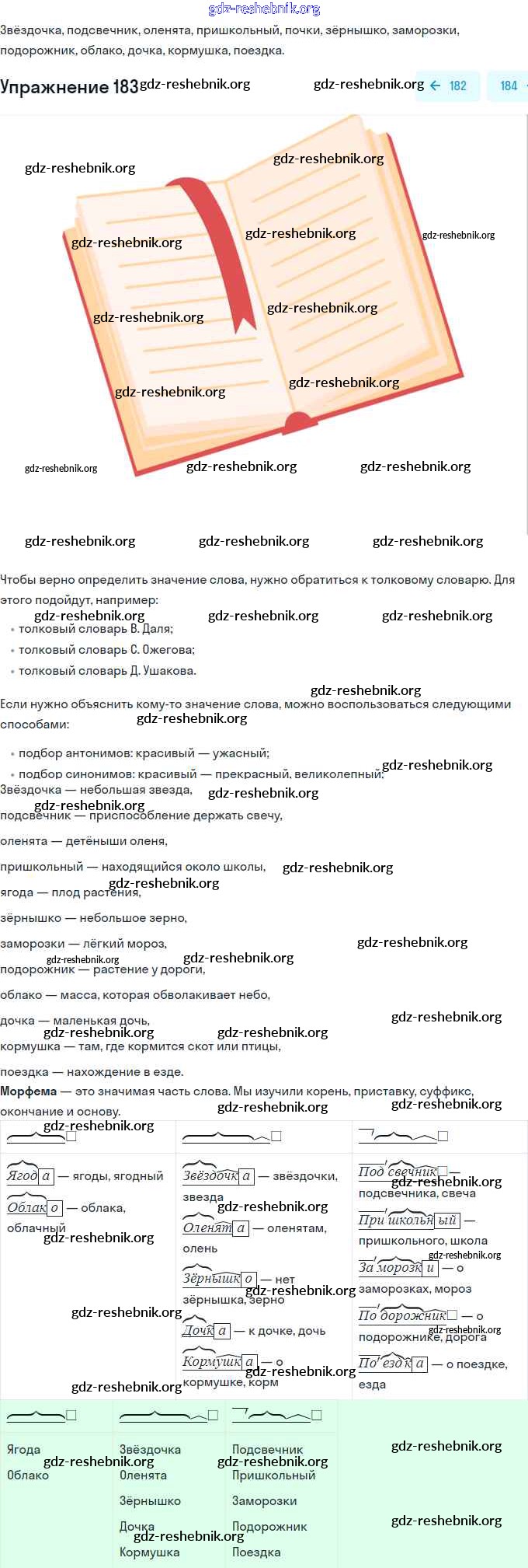 gdz-reshebnik.org - сайт готовых домашних заданий и решебников для школьников по Русскому языку для третьего класса. Предоставляем готовые ответы на задания, авторские материалы к Учебнику Канакина, Горецкий Школа России Часть 1, 2 - Упражнения 183 . Основная часть контента представлена в бесплатном онлайн-формате с удобным и простым интерфейсом.