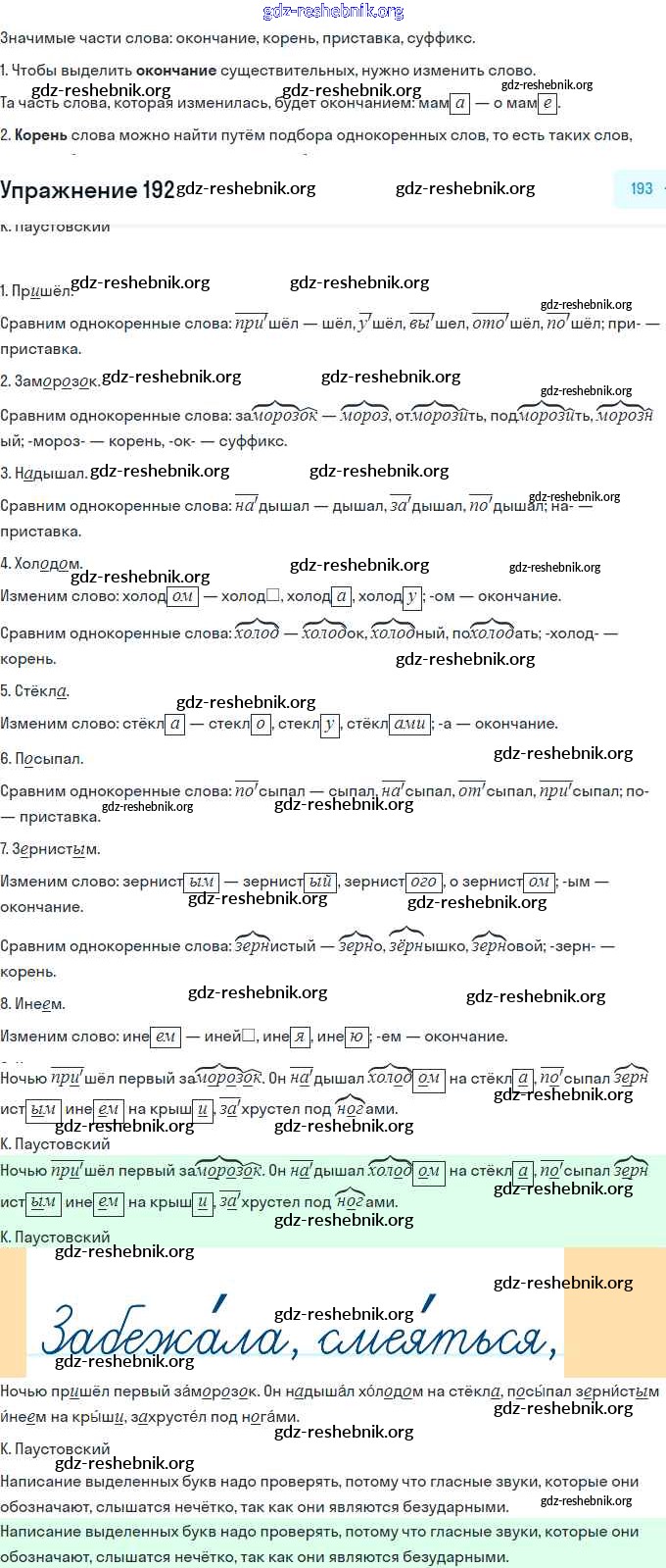 ГДЗ решебники Учебник по Русскому языку 3 класс Канакина, Горецкий Школа России Часть 1, 2 - Упражнения 192