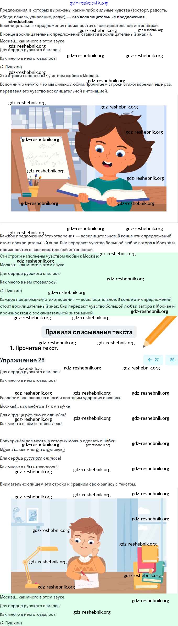 gdz-reshebnik.org - сайт готовых домашних заданий и решебников для школьников по Русскому языку для третьего класса. Предоставляем готовые ответы на задания, авторские материалы к Учебнику Канакина, Горецкий Школа России Часть 1, 2 - Упражнения 28 . Основная часть контента представлена в бесплатном онлайн-формате с удобным и простым интерфейсом.
