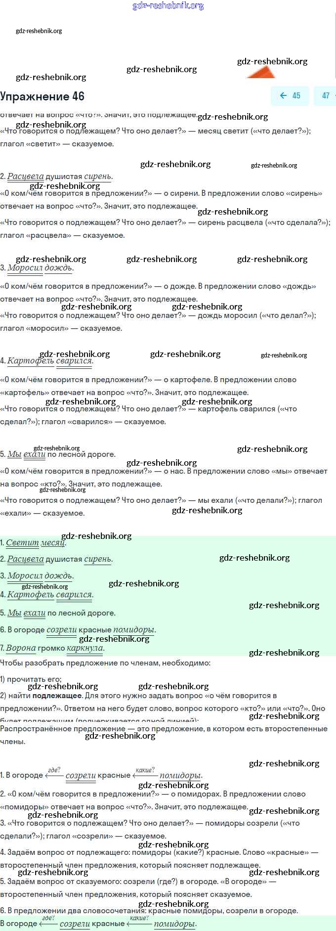 gdz-reshebnik.org - сайт готовых домашних заданий и решебников для школьников по Русскому языку для третьего класса. Предоставляем готовые ответы на задания, авторские материалы к Учебнику Канакина, Горецкий Школа России Часть 1, 2 - Упражнения 46 . Основная часть контента представлена в бесплатном онлайн-формате с удобным и простым интерфейсом.