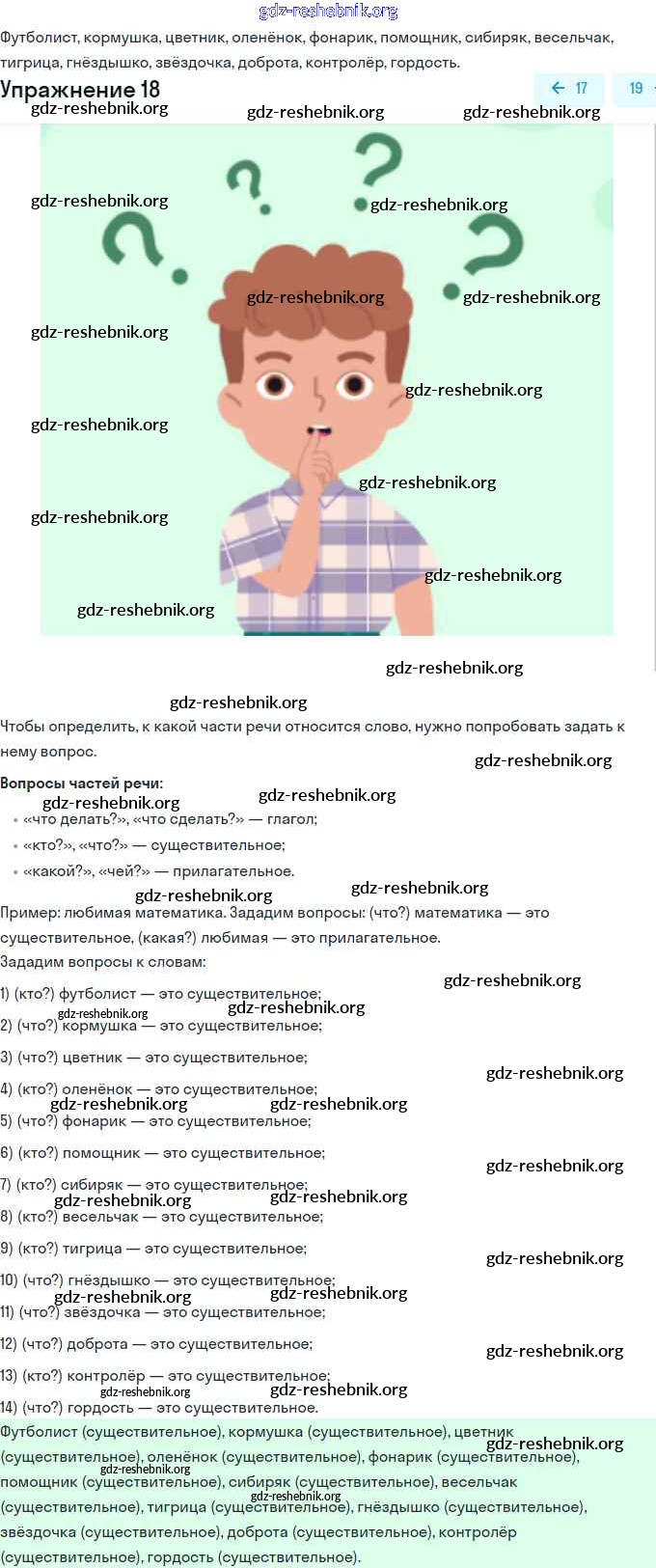 gdz-reshebnik.org - сайт готовых домашних заданий и решебников для школьников по Русскому языку для третьего класса. Предоставляем готовые ответы на задания, авторские материалы к Учебнику Канакина, Горецкий Школа России Часть 1, 2 - Упражнения 18 . Основная часть контента представлена в бесплатном онлайн-формате с удобным и простым интерфейсом.