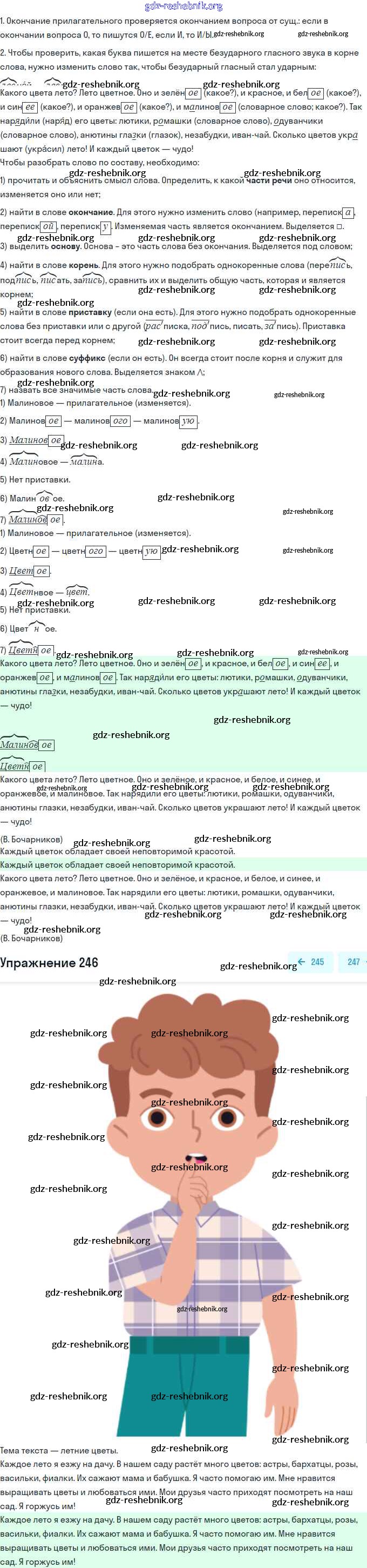 gdz-reshebnik.org - сайт готовых домашних заданий и решебников для школьников по Русскому языку для третьего класса. Предоставляем готовые ответы на задания, авторские материалы к Учебнику Канакина, Горецкий Школа России Часть 1, 2 - Упражнения 246 . Основная часть контента представлена в бесплатном онлайн-формате с удобным и простым интерфейсом.