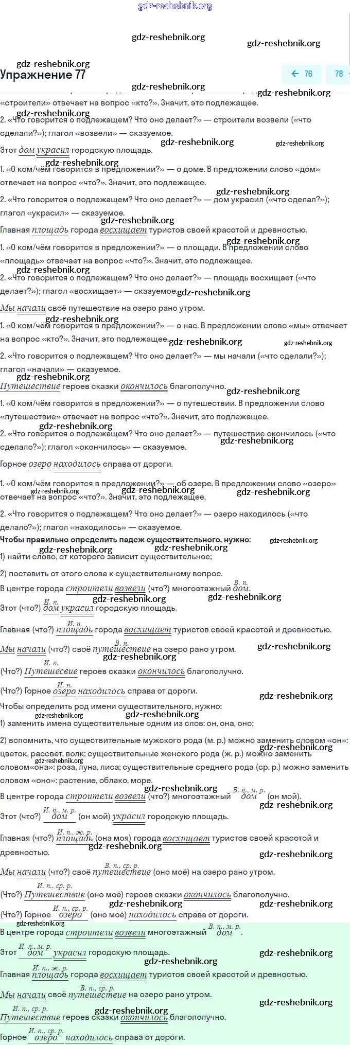 gdz-reshebnik.org - сайт готовых домашних заданий и решебников для школьников по Русскому языку для третьего класса. Предоставляем готовые ответы на задания, авторские материалы к Рабочей тетради Климанова, Бабушкина Перспектива Часть 1, 2 - Часть 2. Упражнения 77 . Основная часть контента представлена в бесплатном онлайн-формате с удобным и простым интерфейсом.