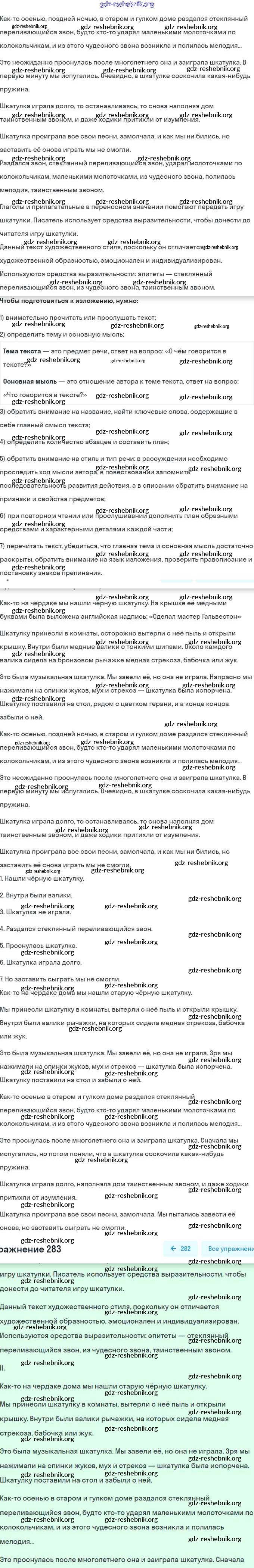 gdz-reshebnik.org - сайт готовых домашних заданий и решебников для школьников по Русскому языку для пятого класса. Предоставляем готовые ответы на задания, авторские материалы к Учебнику Баранов, Ладыженская Часть 1, 2 - Часть 1. Упражнения 283 . Основная часть контента представлена в бесплатном онлайн-формате с удобным и простым интерфейсом.