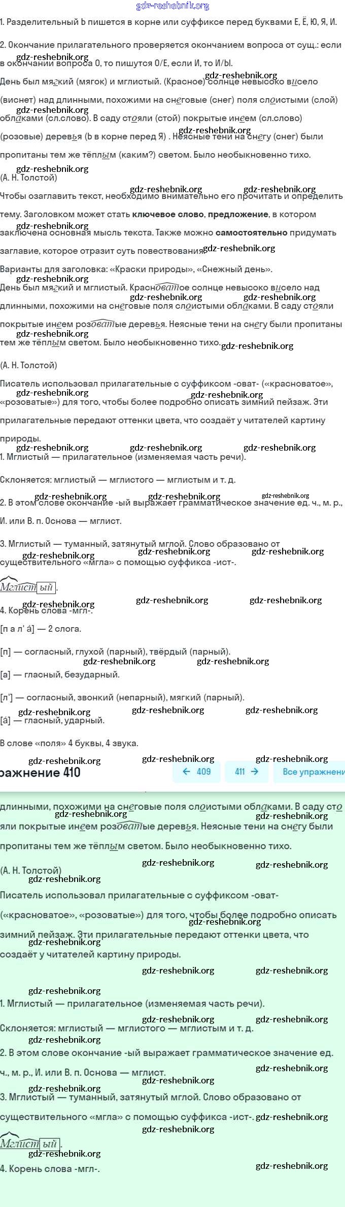 gdz-reshebnik.org - сайт готовых домашних заданий и решебников для школьников по Русскому языку для пятого класса. Предоставляем готовые ответы на задания, авторские материалы к Учебнику Баранов, Ладыженская Часть 1, 2 - Часть 2. Упражнения 410 . Основная часть контента представлена в бесплатном онлайн-формате с удобным и простым интерфейсом.