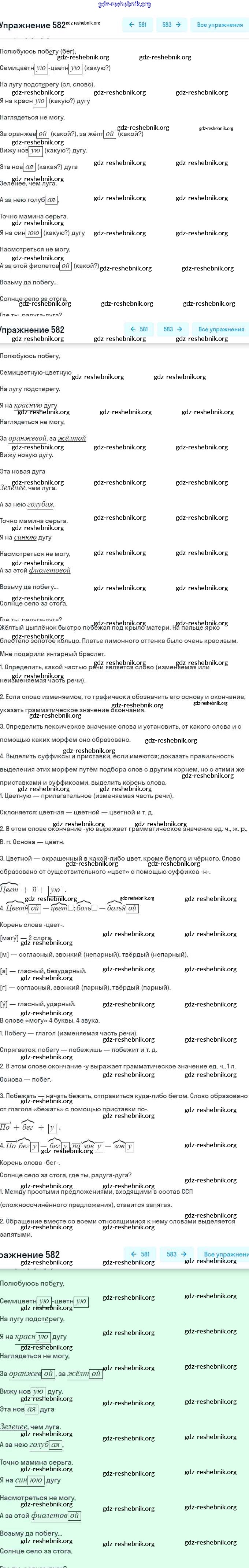 gdz-reshebnik.org - сайт готовых домашних заданий и решебников для школьников по Русскому языку для пятого класса. Предоставляем готовые ответы на задания, авторские материалы к Учебнику Баранов, Ладыженская Часть 1, 2 - Часть 2. Упражнения 582 . Основная часть контента представлена в бесплатном онлайн-формате с удобным и простым интерфейсом.