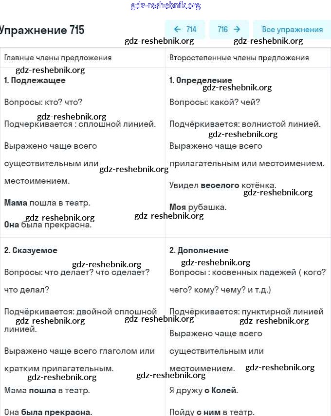 gdz-reshebnik.org - сайт готовых домашних заданий и решебников для школьников по Русскому языку для пятого класса. Предоставляем готовые ответы на задания, авторские материалы к Учебнику Баранов, Ладыженская Часть 1, 2 - Часть 2. Упражнения 715 . Основная часть контента представлена в бесплатном онлайн-формате с удобным и простым интерфейсом.