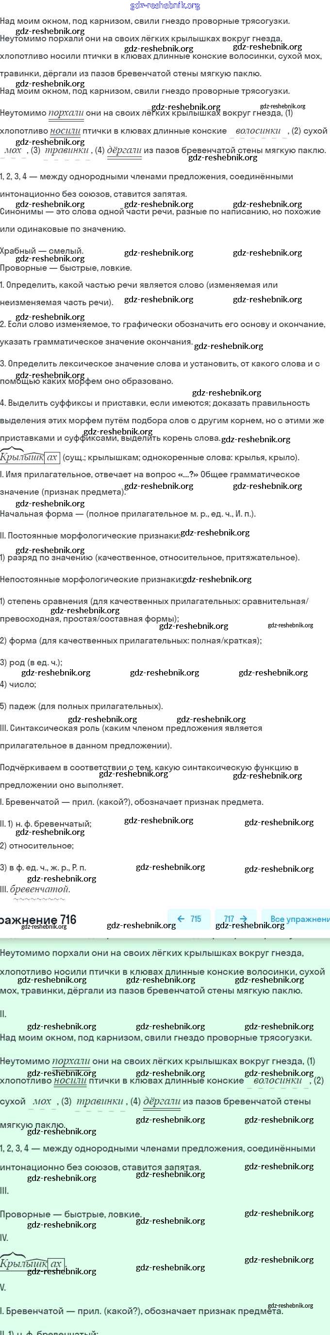 ГДЗ решебники Учебник по Русскому языку 5 класс Баранов, Ладыженская Часть 1, 2 - Часть 2. Упражнения 716