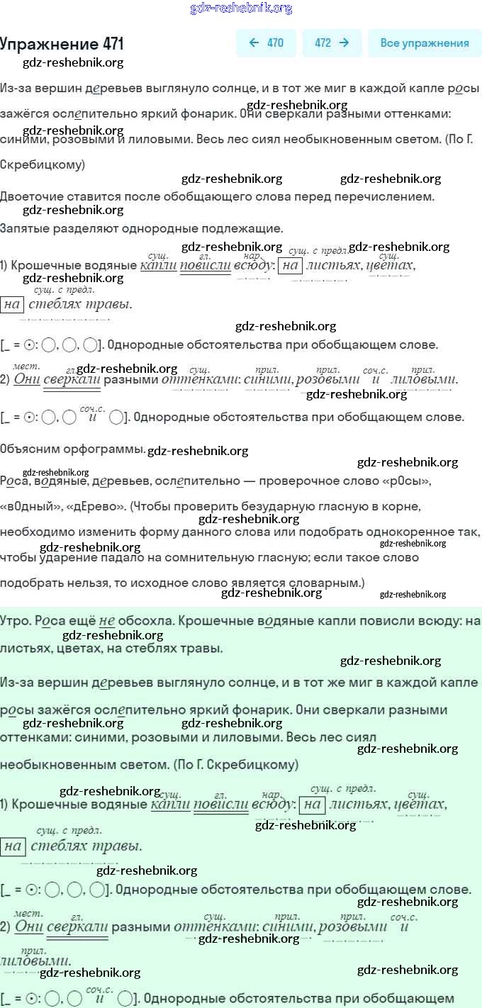 gdz-reshebnik.org - сайт готовых домашних заданий и решебников для школьников по Русскому языку для пятого класса. Предоставляем готовые ответы на задания, авторские материалы к Учебнику Разумовская, Львова - Упражнения 471 . Основная часть контента представлена в бесплатном онлайн-формате с удобным и простым интерфейсом.