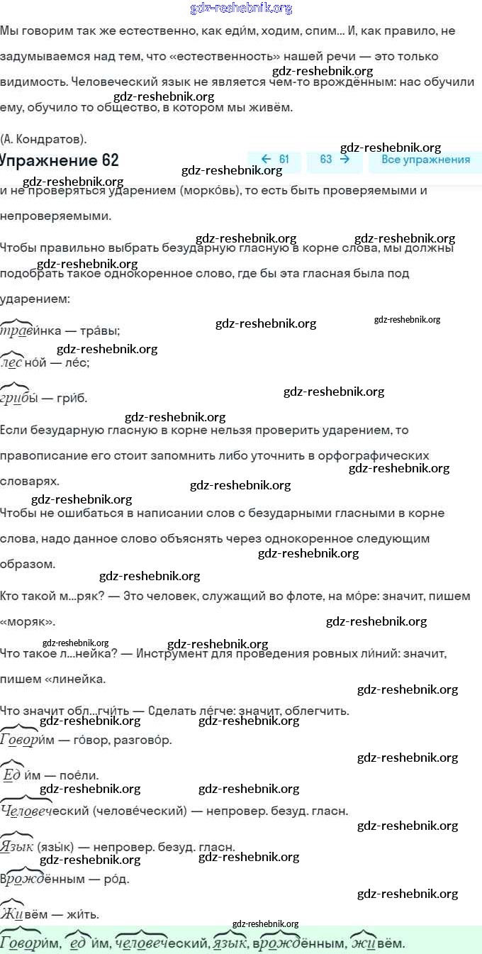 ГДЗ решебники Учебник по Русскому языку 5 класс Разумовская, Львова - Упражнения 62