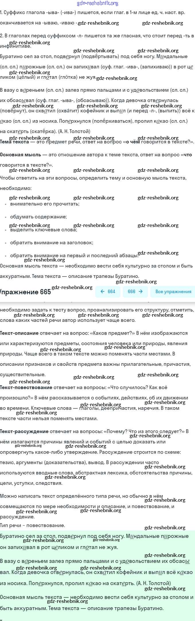 gdz-reshebnik.org - сайт готовых домашних заданий и решебников для школьников по Русскому языку для пятого класса. Предоставляем готовые ответы на задания, авторские материалы к Учебнику Разумовская, Львова - Упражнения 665 . Основная часть контента представлена в бесплатном онлайн-формате с удобным и простым интерфейсом.