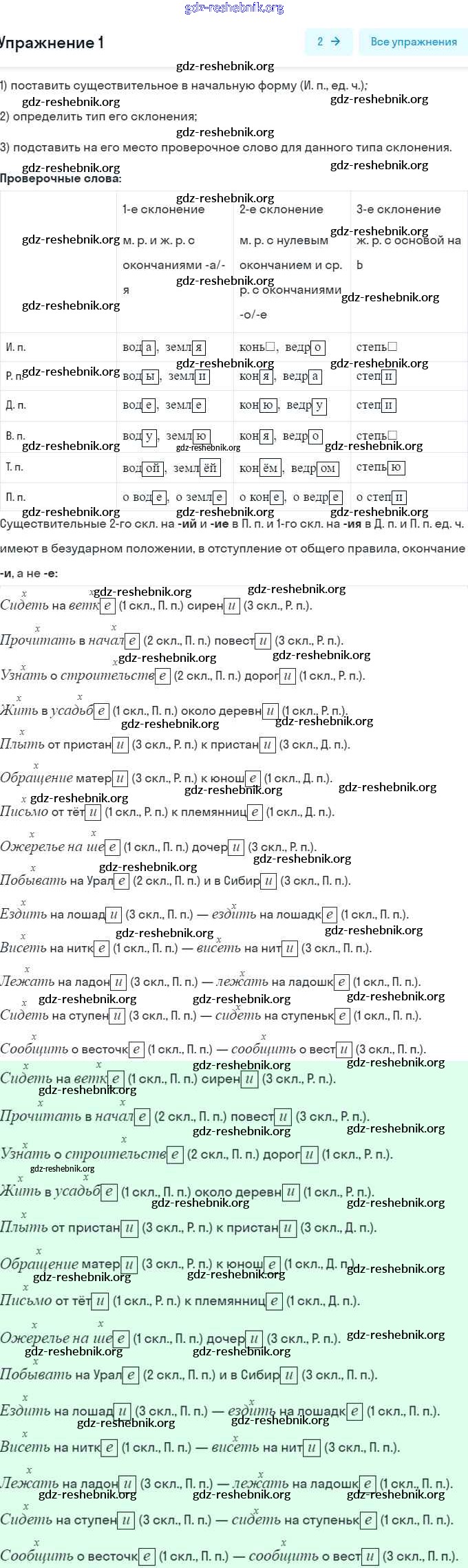 ГДЗ решебники Рабочая тетрадь по Русскому языку 5 класс Рыбченкова, Роговик Часть 1, 2 - §40. Буквы е, и в падежных окончаниях имён существительных 1