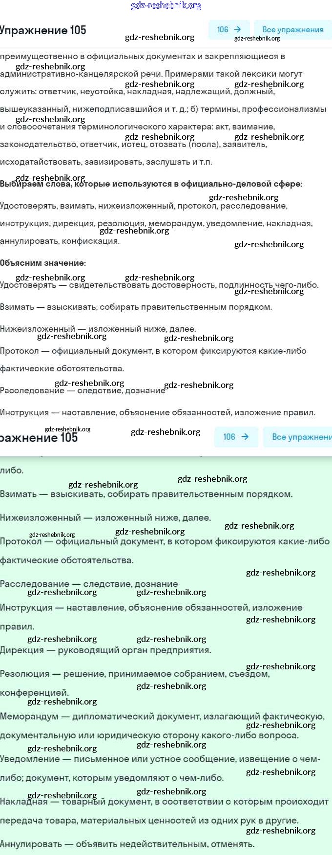 ГДЗ решебники Учебник по Русскому языку 6 класс Баранов, Ладыженская Часть 1, 2 - Упражнения 105