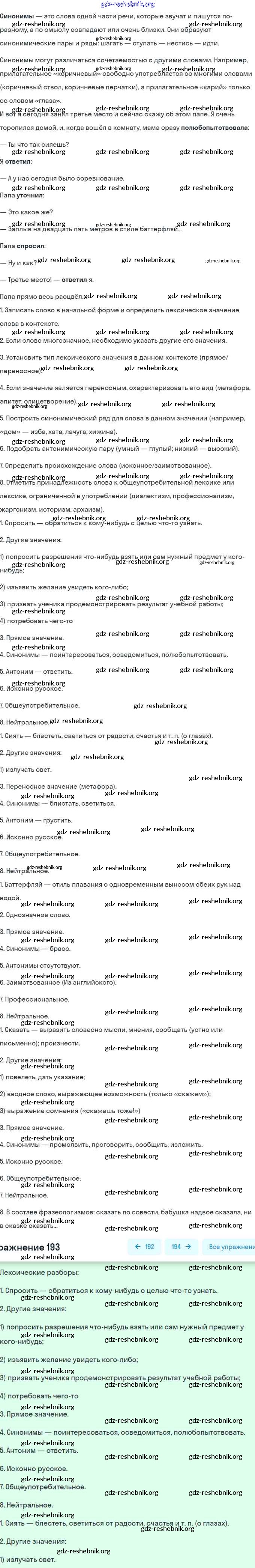 gdz-reshebnik.org - сайт готовых домашних заданий и решебников для школьников по Русскому языку для шестого класса. Предоставляем готовые ответы на задания, авторские материалы к Учебнику Баранов, Ладыженская Часть 1, 2 - Упражнения 193 . Основная часть контента представлена в бесплатном онлайн-формате с удобным и простым интерфейсом.