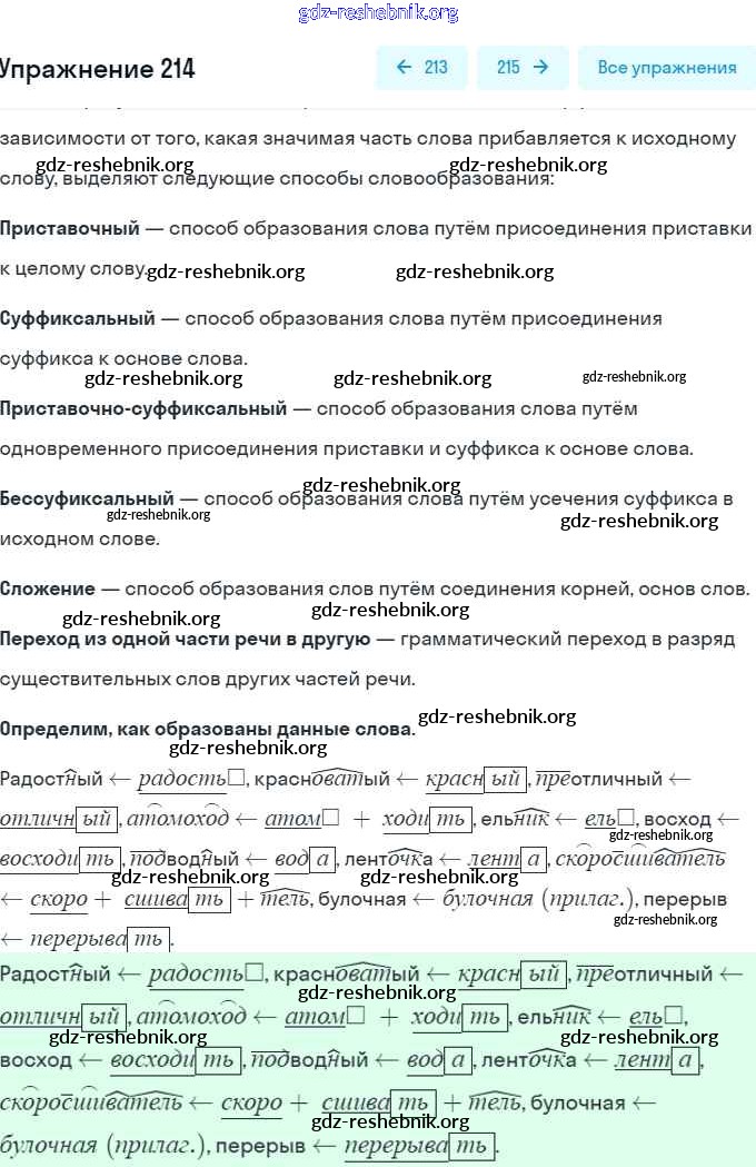 ГДЗ решебники Учебник по Русскому языку 6 класс Баранов, Ладыженская Часть 1, 2 - Упражнения 214