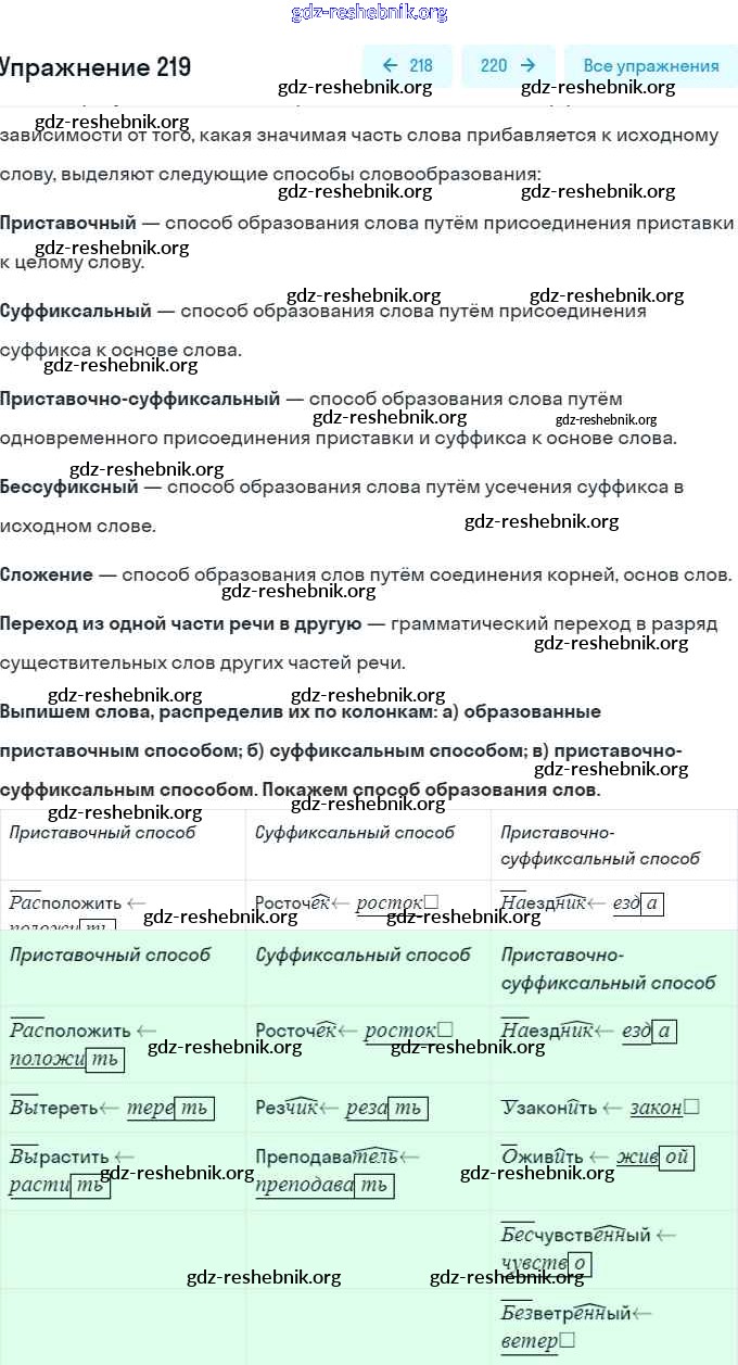 gdz-reshebnik.org - сайт готовых домашних заданий и решебников для школьников по Русскому языку для шестого класса. Предоставляем готовые ответы на задания, авторские материалы к Учебнику Баранов, Ладыженская Часть 1, 2 - Упражнения 219 . Основная часть контента представлена в бесплатном онлайн-формате с удобным и простым интерфейсом.