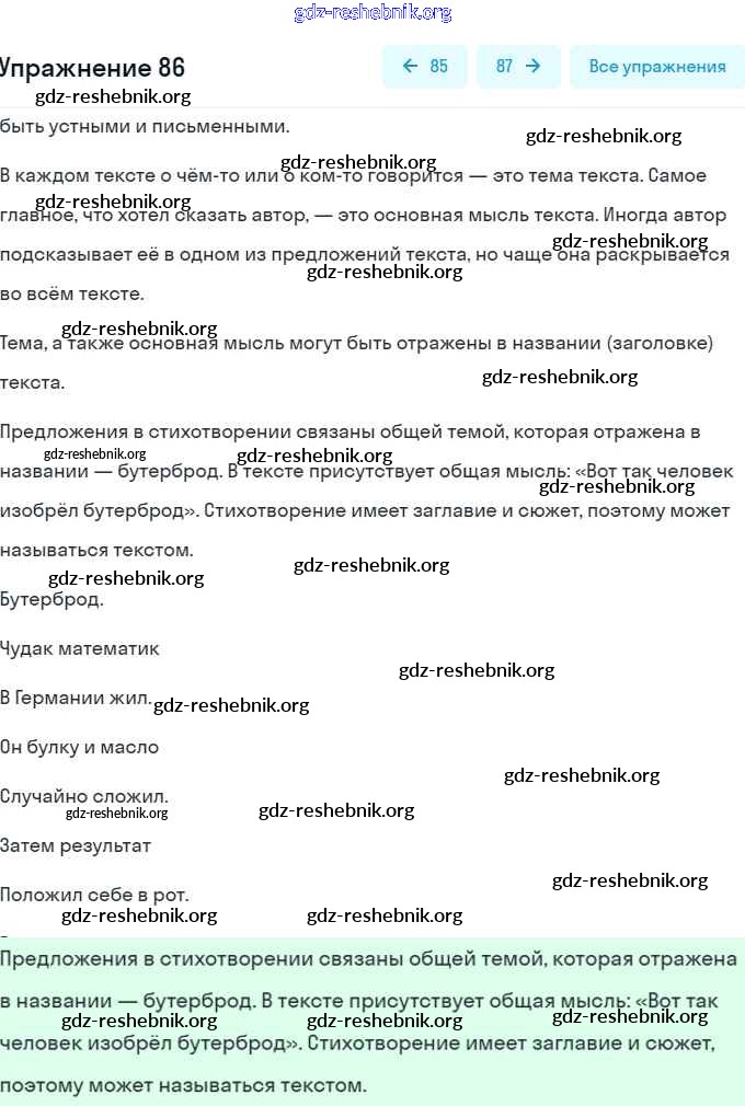 gdz-reshebnik.org - сайт готовых домашних заданий и решебников для школьников по Русскому языку для шестого класса. Предоставляем готовые ответы на задания, авторские материалы к Учебнику Баранов, Ладыженская Часть 1, 2 - Упражнения 86 . Основная часть контента представлена в бесплатном онлайн-формате с удобным и простым интерфейсом.