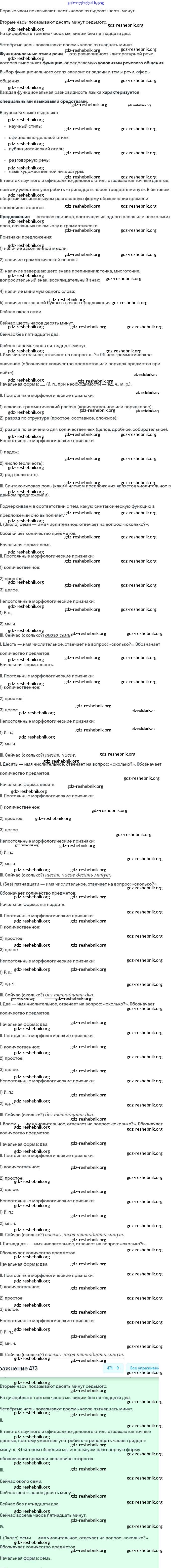gdz-reshebnik.org - сайт готовых домашних заданий и решебников для школьников по Русскому языку для шестого класса. Предоставляем готовые ответы на задания, авторские материалы к Учебнику Баранов, Ладыженская Часть 1, 2 - Упражнения 473 . Основная часть контента представлена в бесплатном онлайн-формате с удобным и простым интерфейсом.