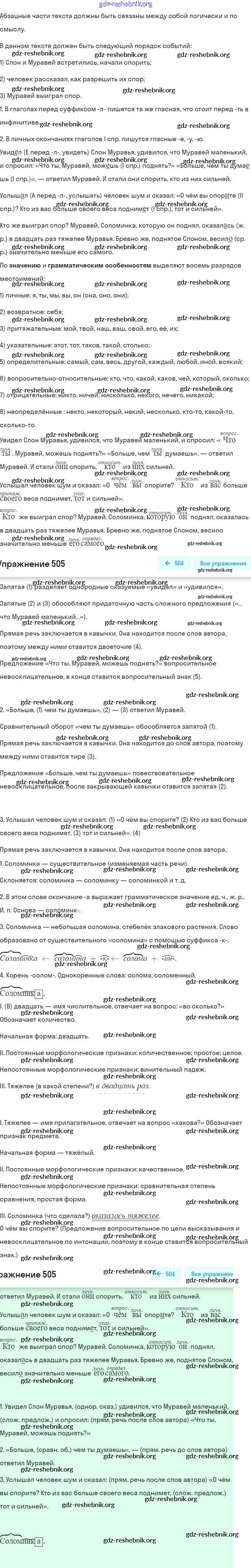 ГДЗ решебники Учебник по Русскому языку 6 класс Баранов, Ладыженская Часть 1, 2 - Упражнения 505