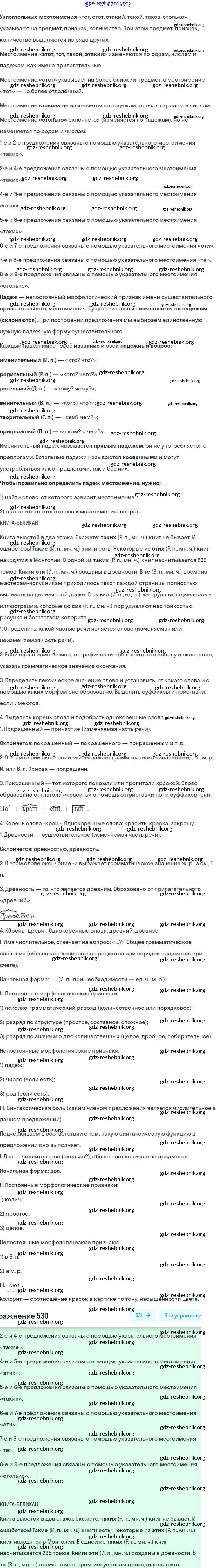 ГДЗ решебники Учебник по Русскому языку 6 класс Баранов, Ладыженская Часть 1, 2 - Упражнения 530