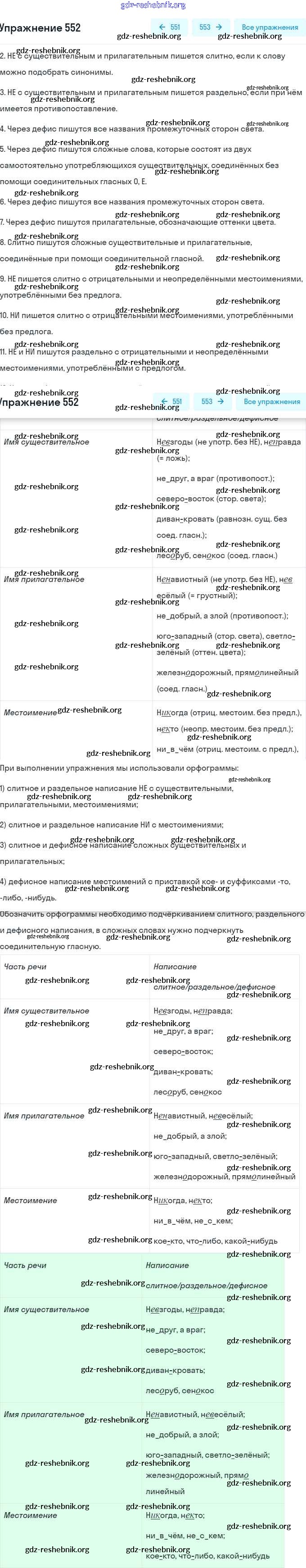 ГДЗ решебники Учебник по Русскому языку 6 класс Баранов, Ладыженская Часть 1, 2 - Упражнения 552