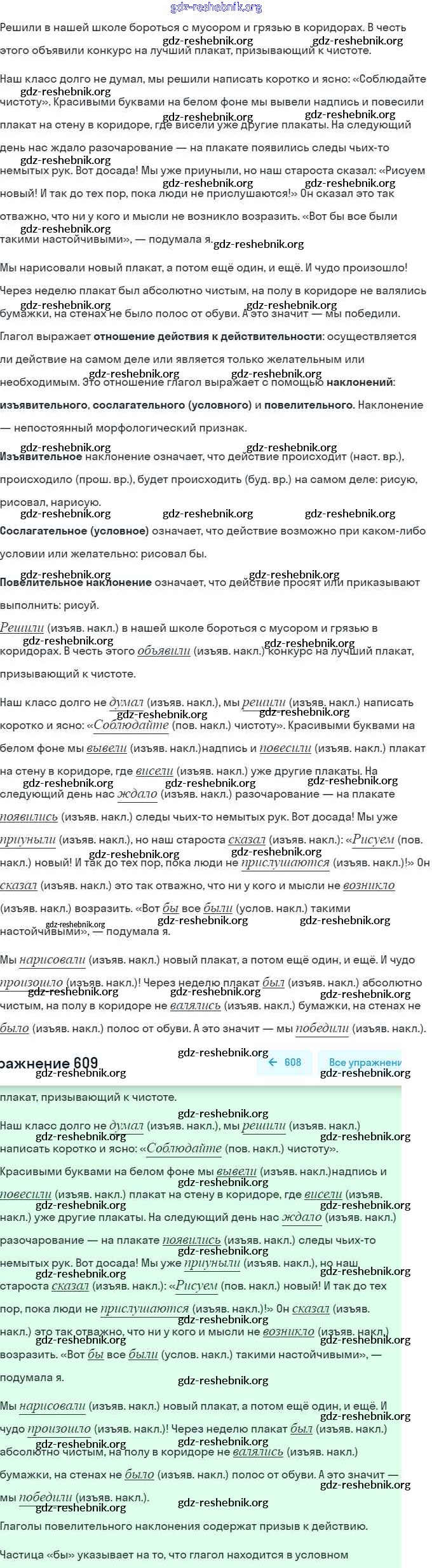 ГДЗ решебники Учебник по Русскому языку 6 класс Баранов, Ладыженская Часть 1, 2 - Упражнения 609