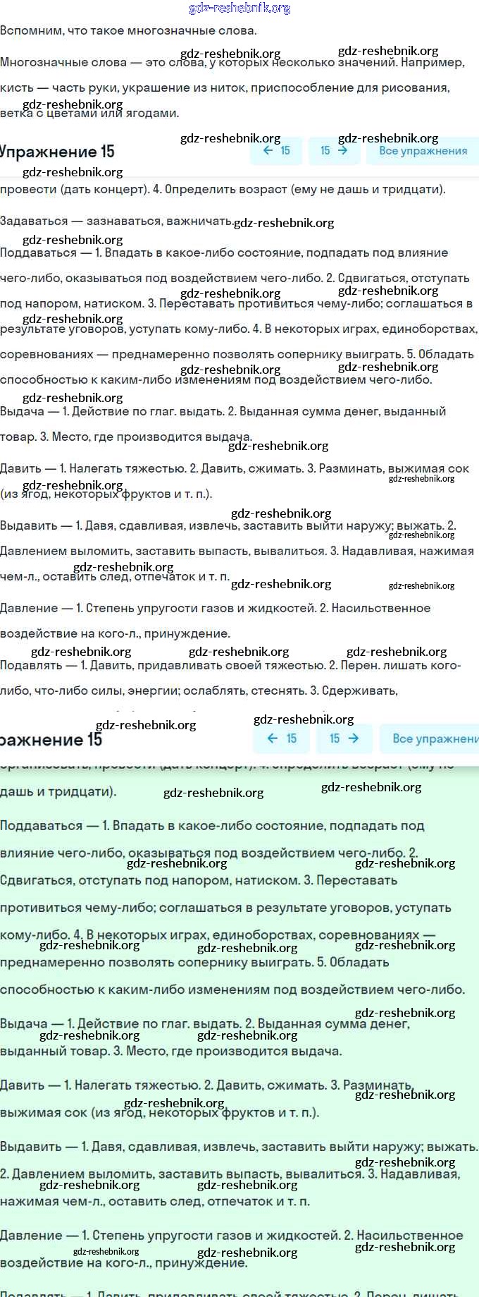ГДЗ решебники Рабочая тетрадь по Русскому языку 6 класс Гостева УМК - Упражнения 15