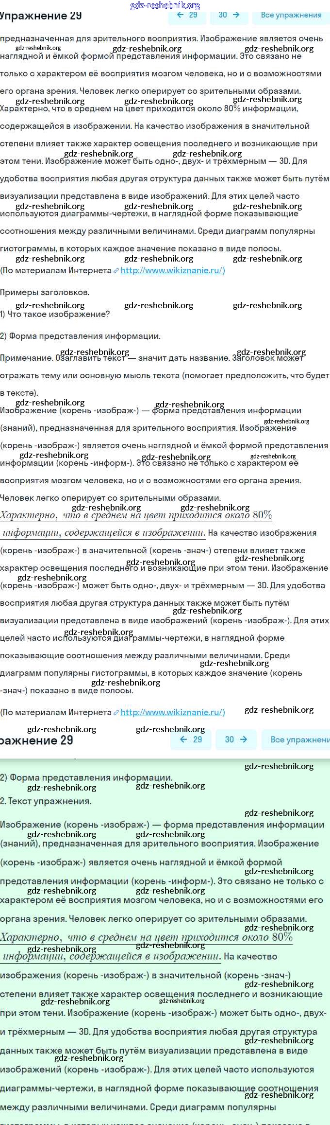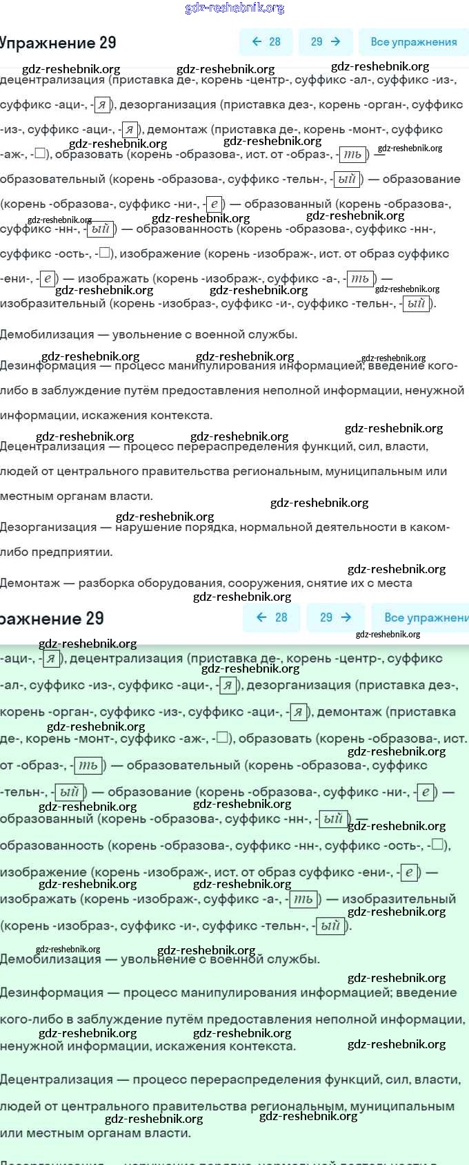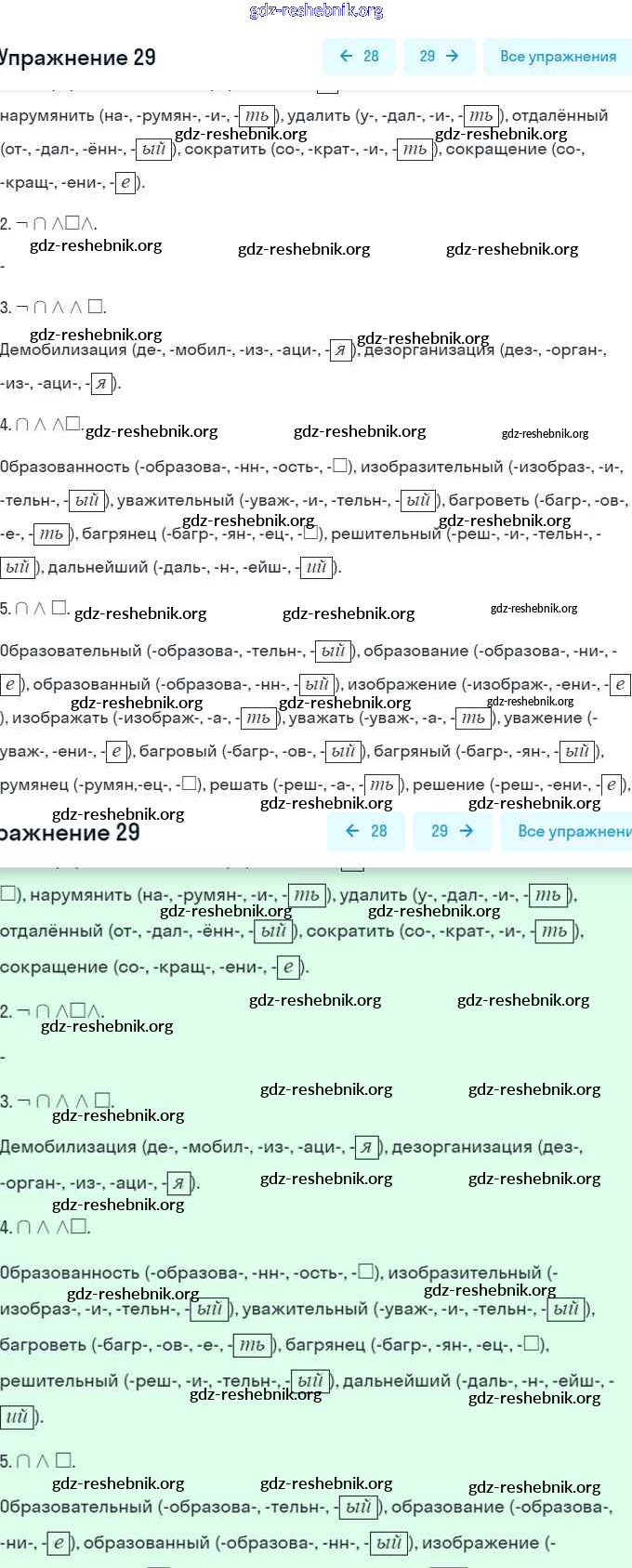 ГДЗ решебники Рабочая тетрадь по Русскому языку 6 класс Гостева УМК - Упражнения 29